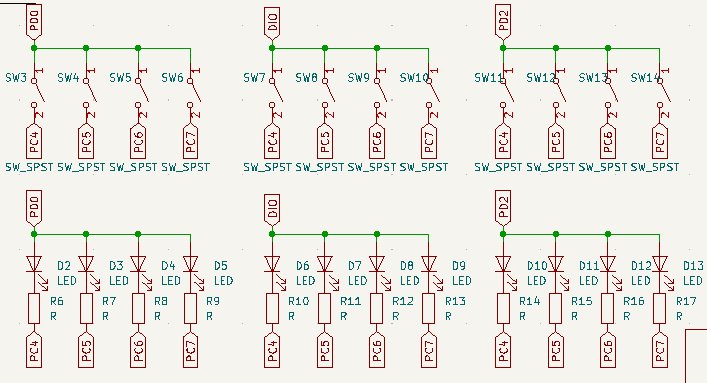 スイッチを押していないときは、ダイナミック点灯ですべてのLEDを個別に制御できますし、押されたスイッチもそれぞれ個別に認識できますが。